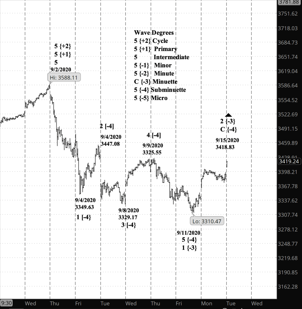 What is the alternative? It is still possible for the price to reverse and extend the correction that began September 11 from 3,310.47. I find it to be unlikely but can’t rule it out entirely.