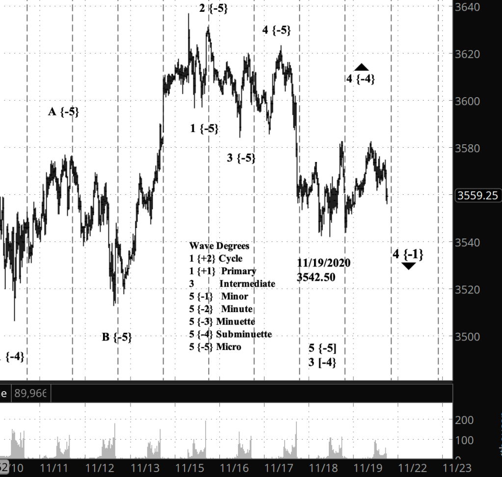 Half an hour before the closing bell, the S&P 500 index and investments based on it continue to work through the Subminuette wave 4 upsdice correction.