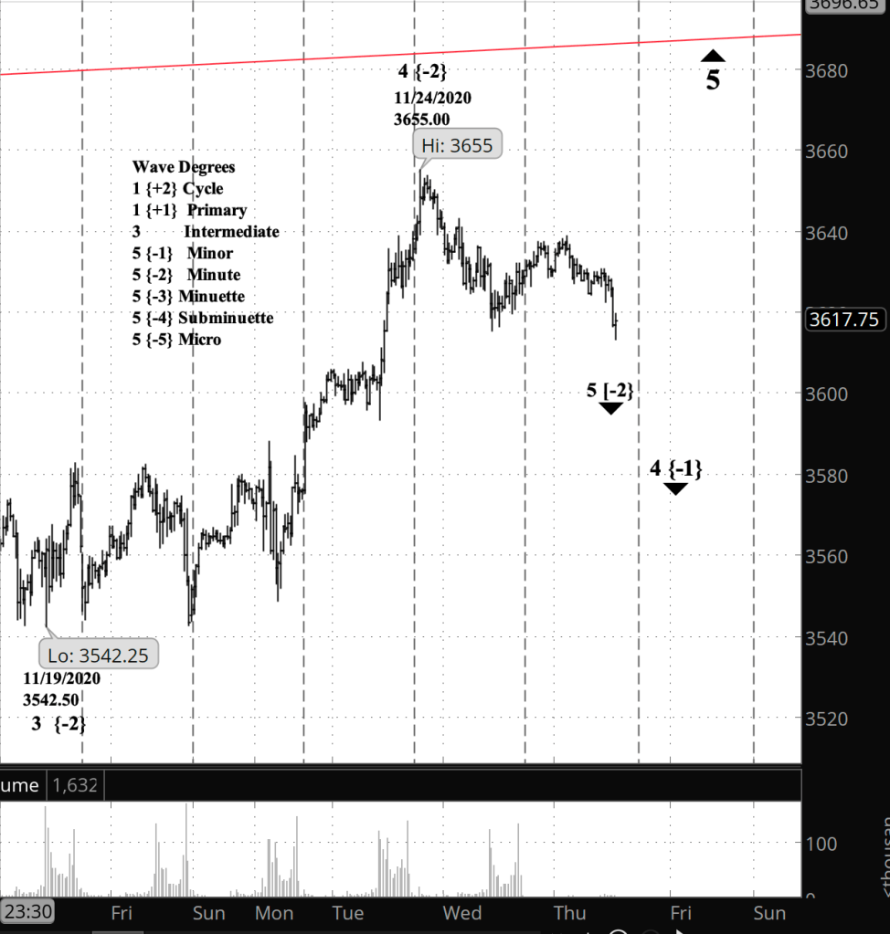 What’s happening now? U.S. stock and bond markets are closed for the Thanksgiving Day holiday. During a shortened trading day, ending at 1 p.m. New York time, the S&P 500 E-mini futures fell to a new low since the November 24 peak.