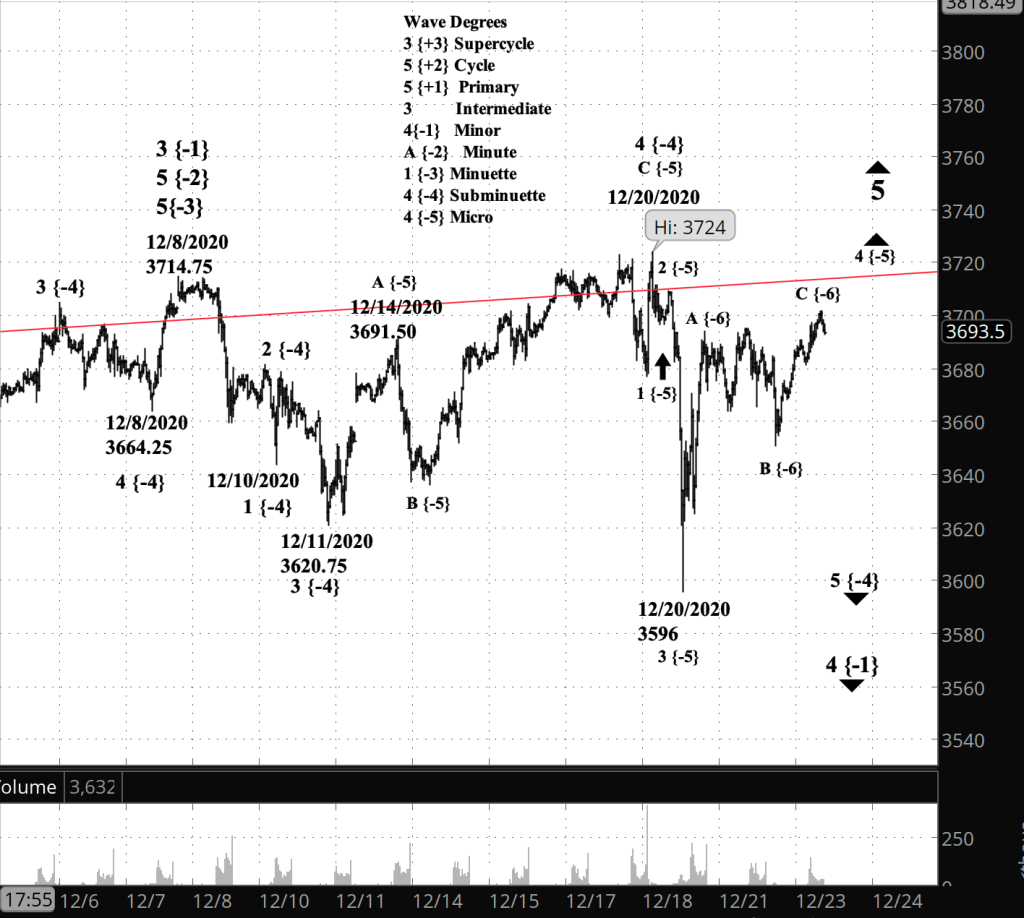 What’s happening now? The S&P 500 index E-mini futures are working through the third wave of an upward correction that began December 20.