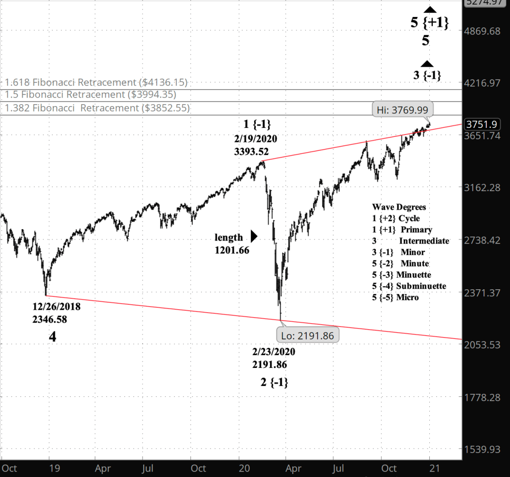 What’s happening now? On the first trading day of 2021, S&P 500 index and E-mini futures continued their rise. The index hit an early high of 3769.99 and the futures, of 3773.25.