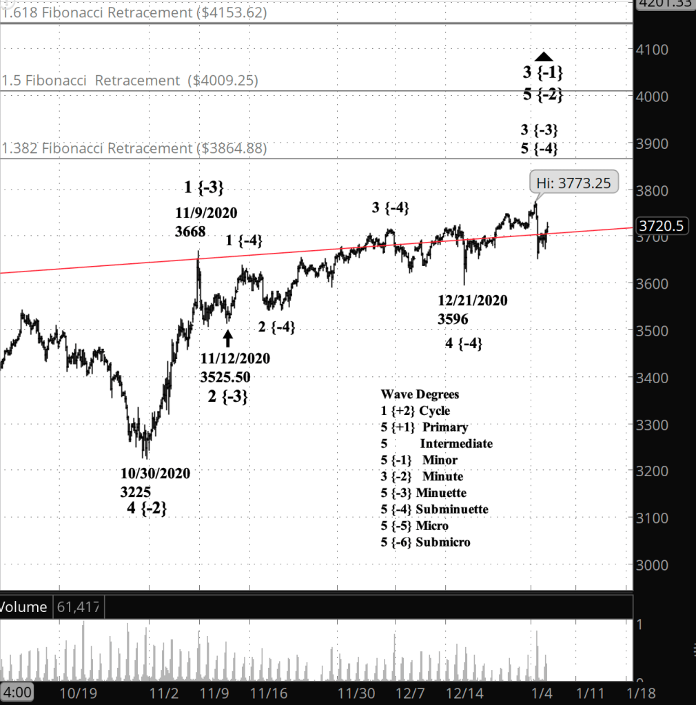 What does Elliott wave theory say? Now underway, wave 5 of Subminuette degree within wave3 of Minuette degree.