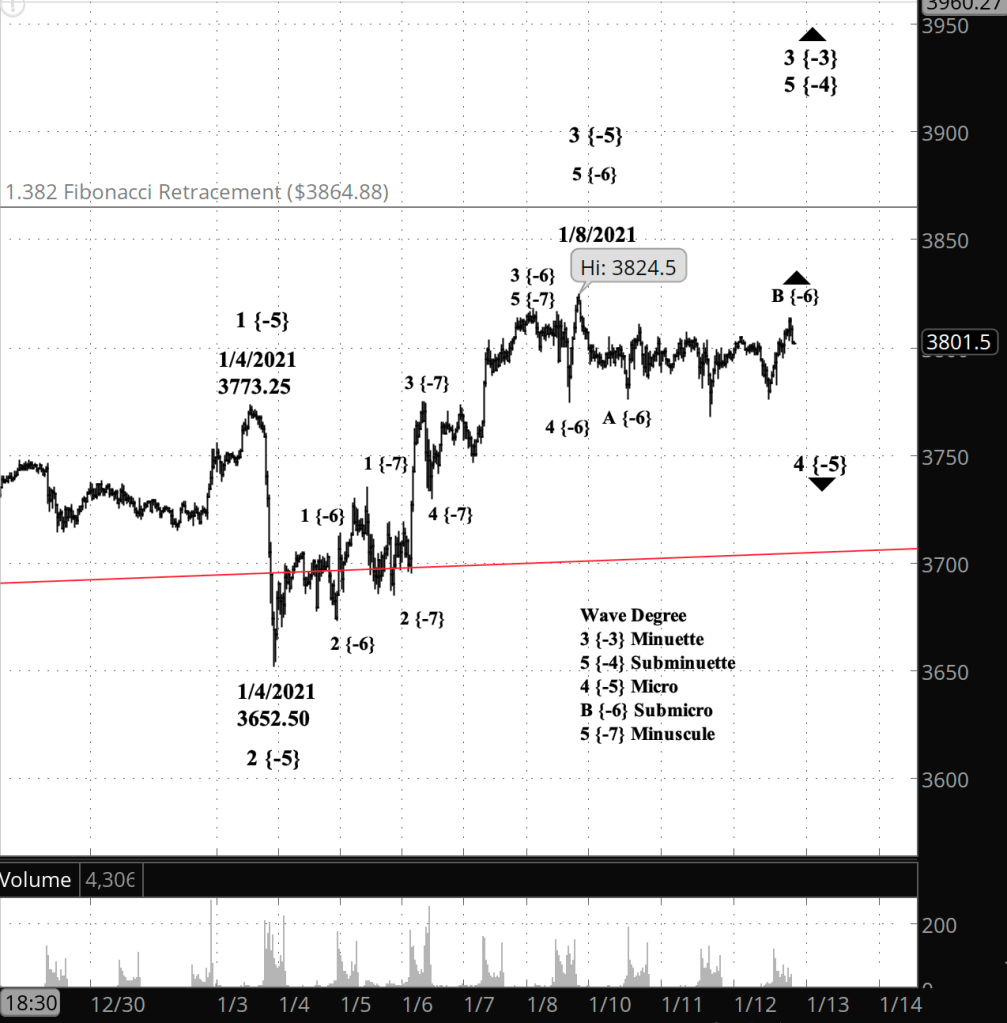 What’s happening now? The S&P 500 E-mini futures continue to work through an upward retracement within a downward correction that began January 8.