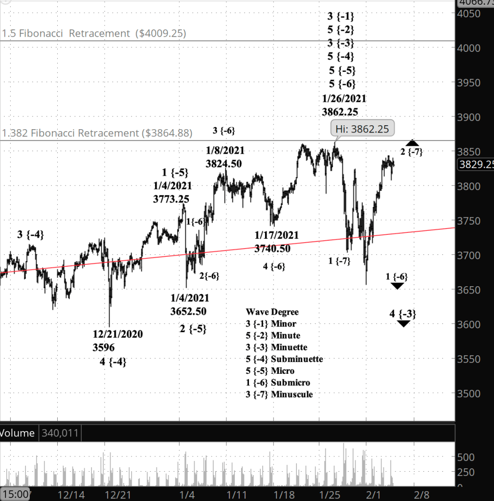 What are the alternatives? A pause is a balance between buy and sell orders. If the buy side strengthens, then the correction will continue its upward course. A move above 3862.25 on the E-mini futures (3870.90 on the index) would force a re-analysis of the chart.
