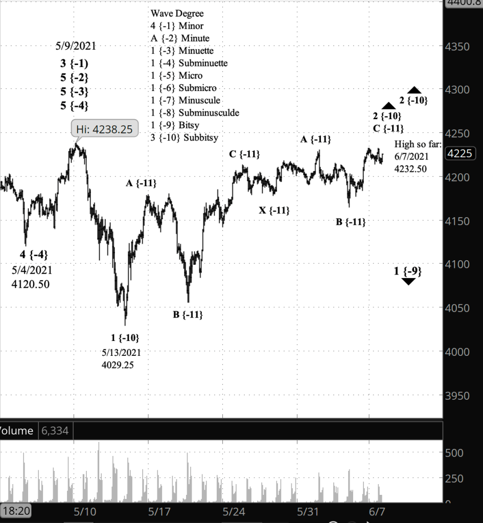 If the price exceeds exceeds 4238.25, then wave 5 of Subminuette degree is still underway.