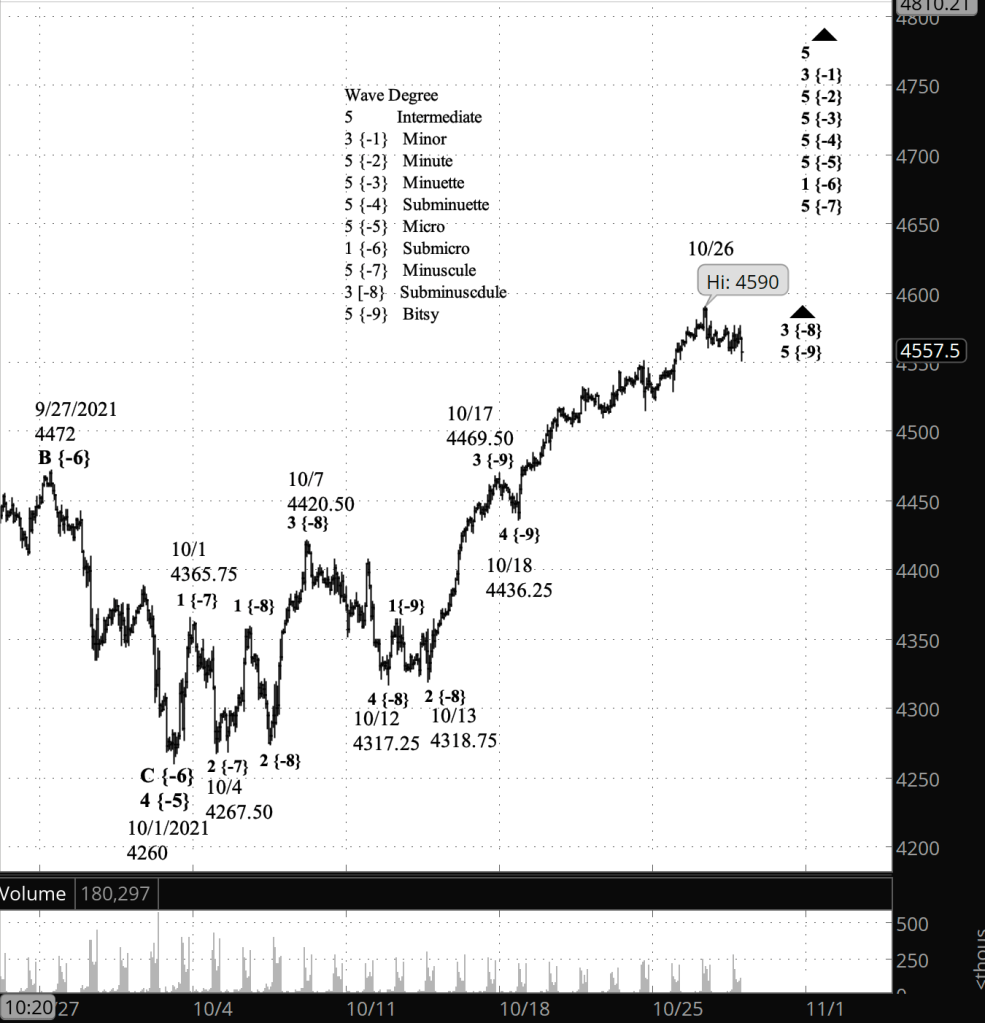 What is the alternative? A bearish alternative would be to redo the analysis entirely, making yesterday’s high the end of the rise that began February 23, 2020. Based on the internal count, I consider this to be of extremely low probability.