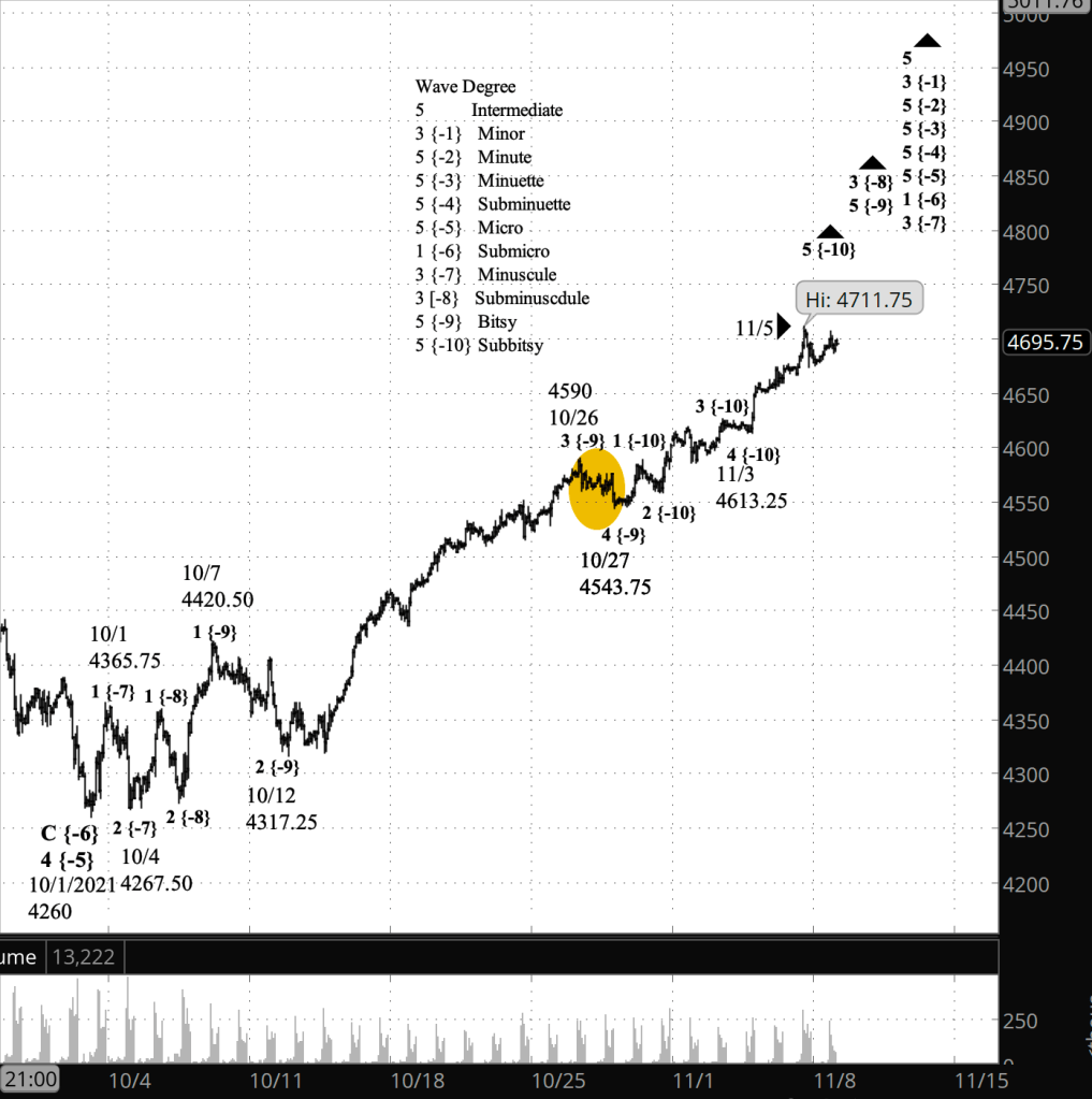 What’s happening now? The S&P 500 E-mini futures moved up in overnight trading, so far remaining below Friday’s peak of 4711.75.