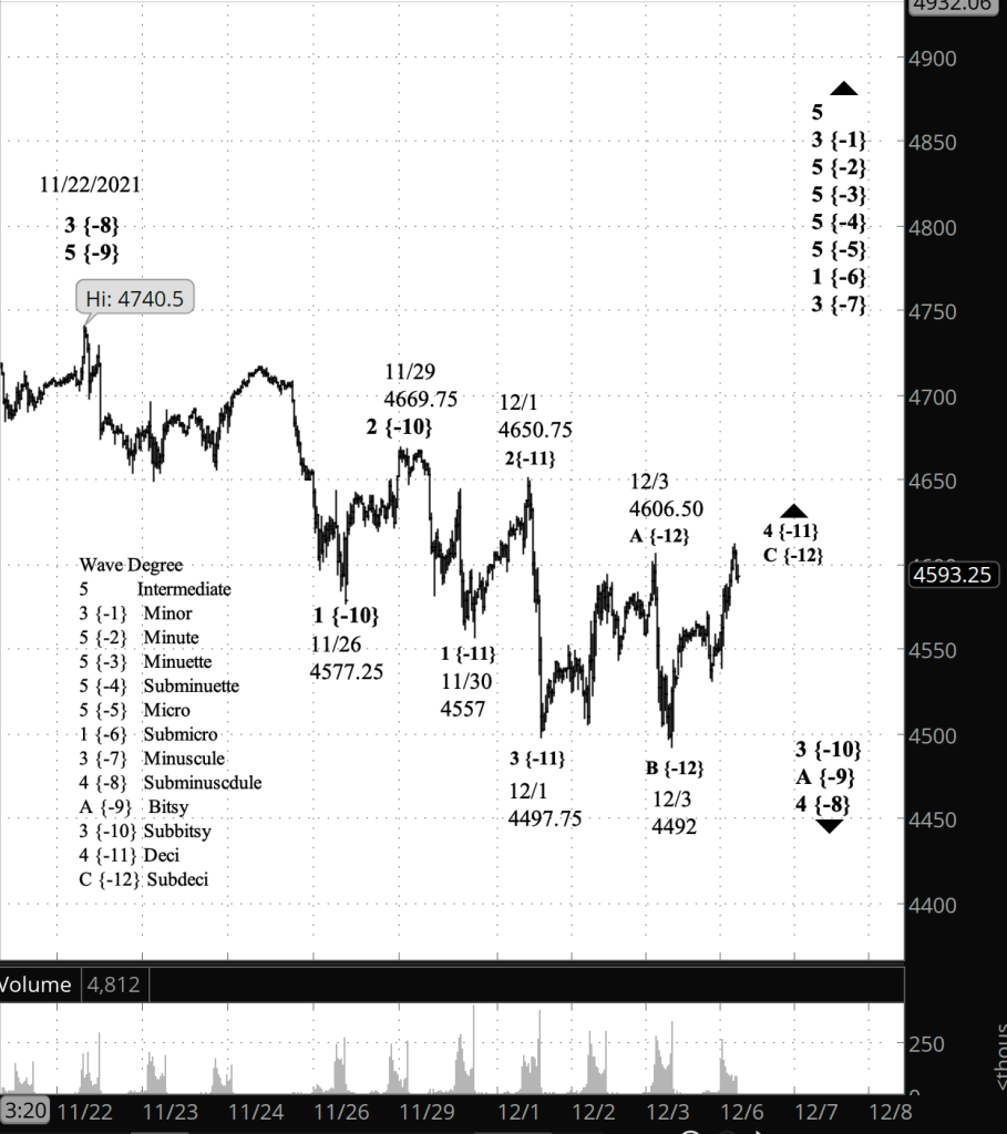 The end of Deci wave C will also be the end of its parent, Subbitsy wave 4 and will be followed by a 5th wave decline, most likely below the end of wave 3, 4497.75.
