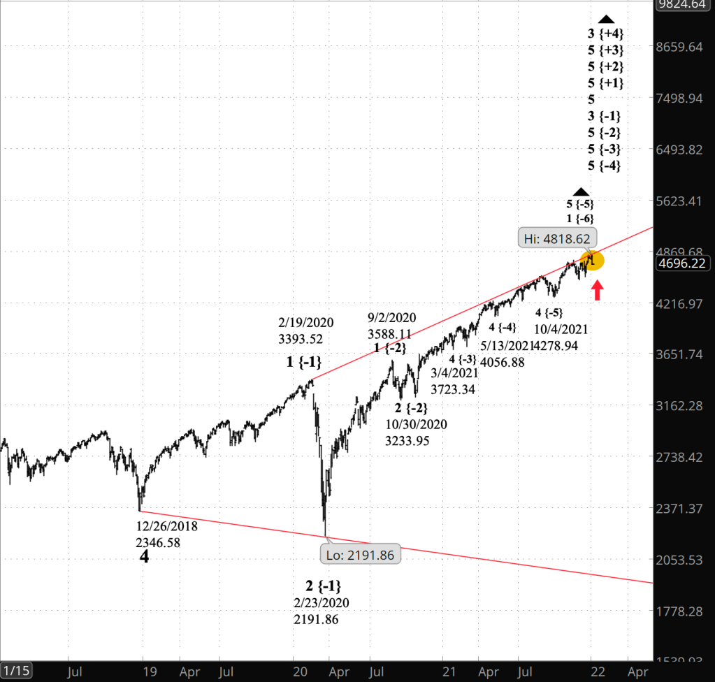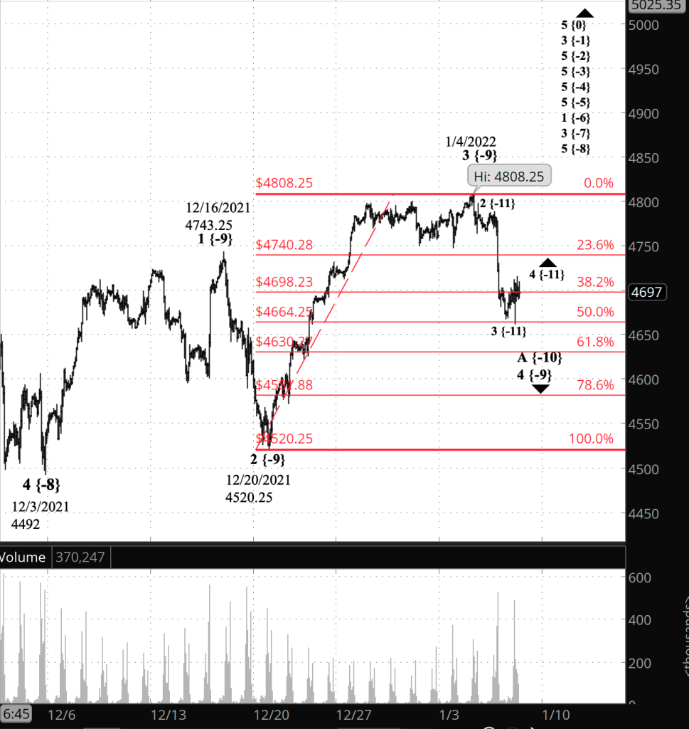 What’s happening now? The S&P 500 E-mini futures overnight retraced half of the rise from December 20 and then bounced back slightly. The decline from the January 4 high, 4808.25, covered 140.25 points, carrying the price down to 4668