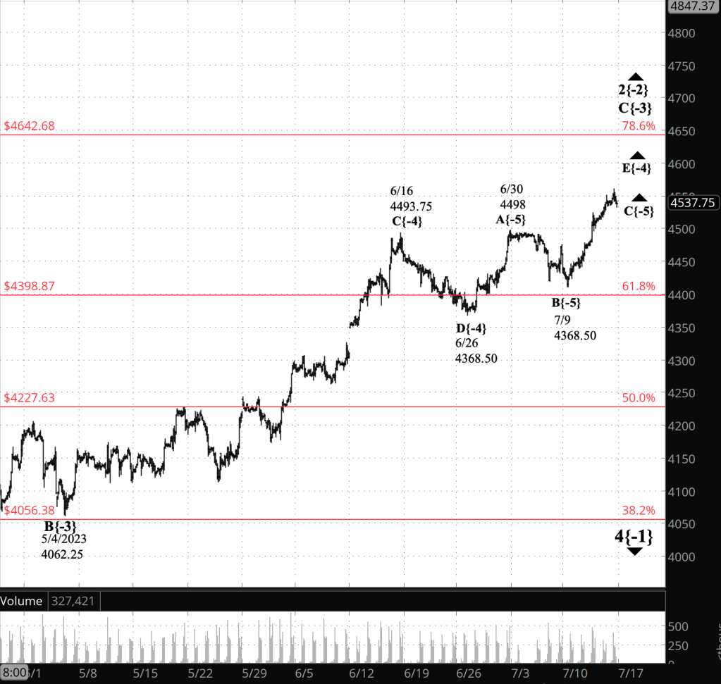 - Under the rules of Elliott wave analysis, wave 2{-2} cannot move beyond the beginning of wave 1{-2}, which was the January 4, 2022 peak at 4953.25