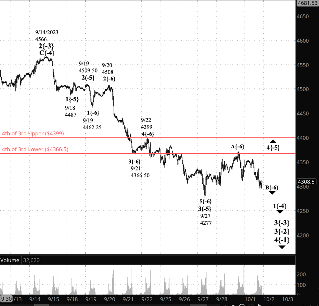 Half an hour before the closing bell. The S&P 500 futures fell further during the session, into the 4290s. The 2nd subwave, the B wave, of the 4th wave upward correction that began on September 27 continues and is in its final subwave. I’ve updated the chart.