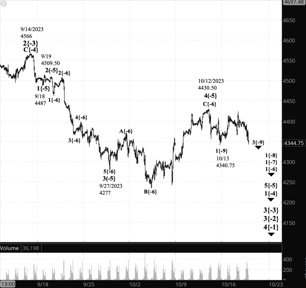 - Within wave 3{-2}, a smaller downtrend, wave 3{-3}, began on September 14 and is in its initial subwave, wave 1{-4}.