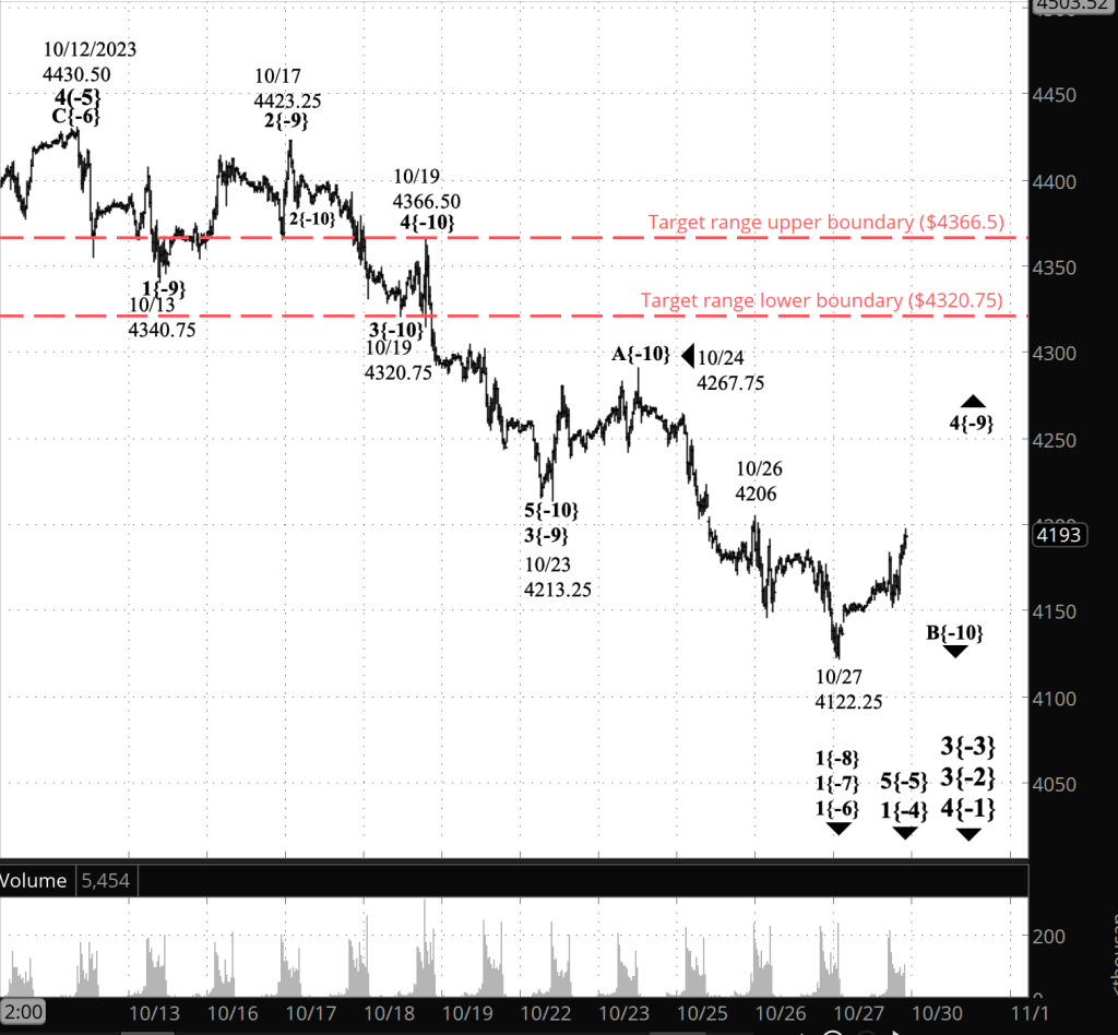 - Or the middle wave ended on October 22 at 4122.25, and the final wave of the correction has begun. This is the C-wave scenario.