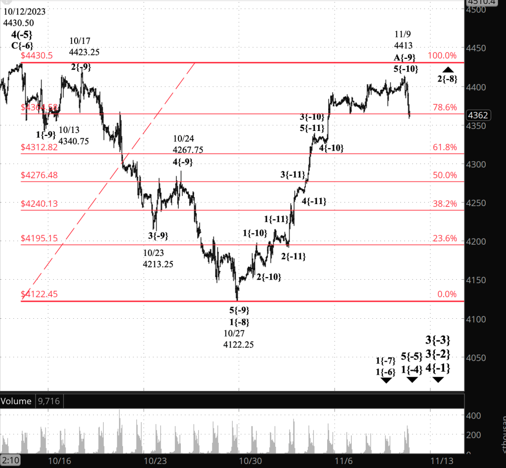Tentatively, the most likely scenario, if 4430.50 should be breached, goes like this: