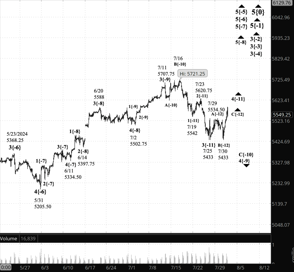 All of this is happening within the 4th-wave upward correction that began on July 25 from 5433, which is a subwave of a larger C wave within a larger 4th-wave downward correction.