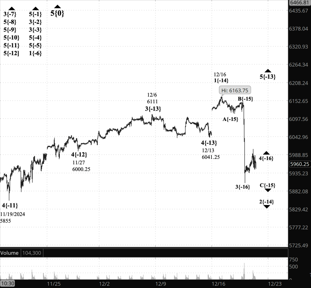 Half an hour before the closing bell. As the session opened, the S&P 500 futures peaked at 6005.25 and then fell slowly thereafter into the 5950s.