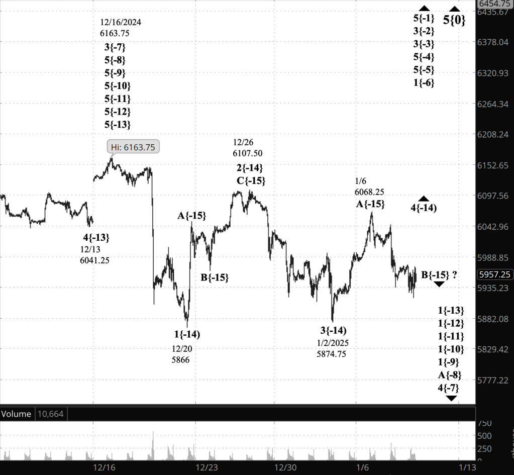 As is so often the case in Elliott Wave Analysis, time will tell. In the meantime, I’ve retained the labeling but have added a question mark after the wave B{-15} label.