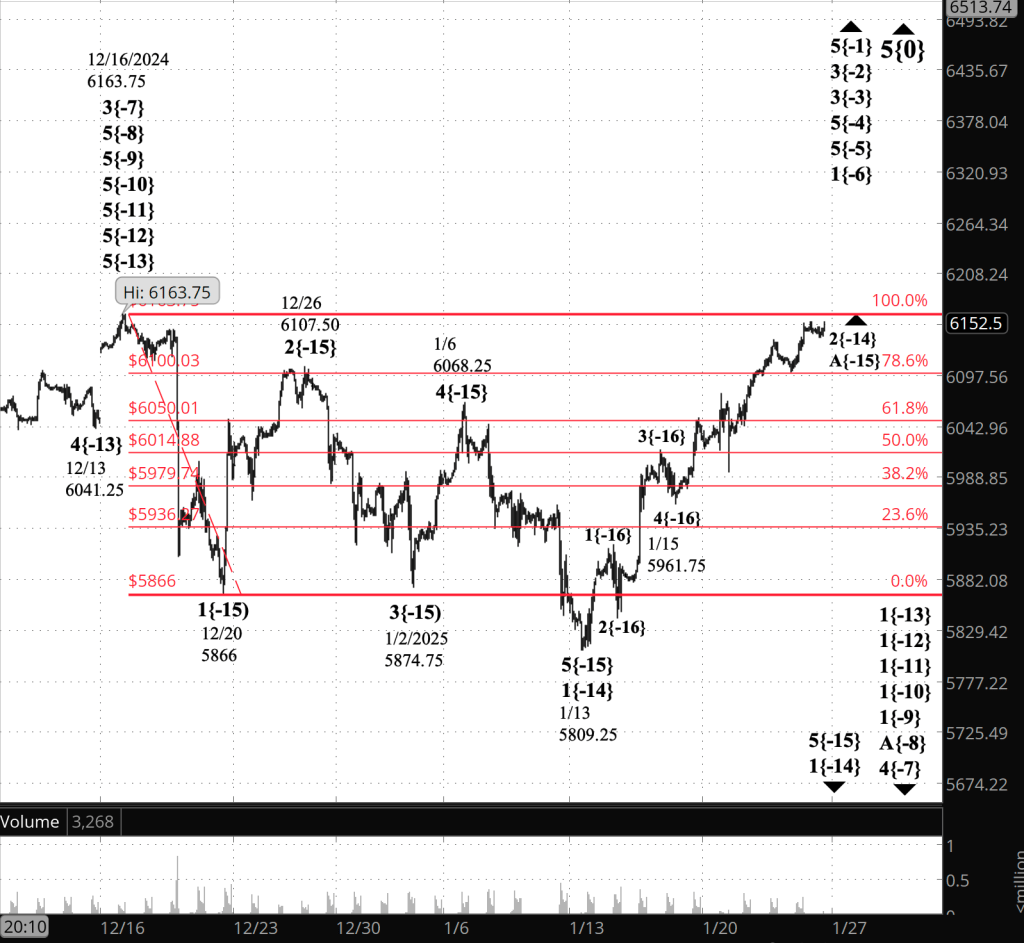 What’s happening now? The S&P 500 E-mini futures continued to rise overnight, coming ever closer the peak, 6163.75, attained on December 16.