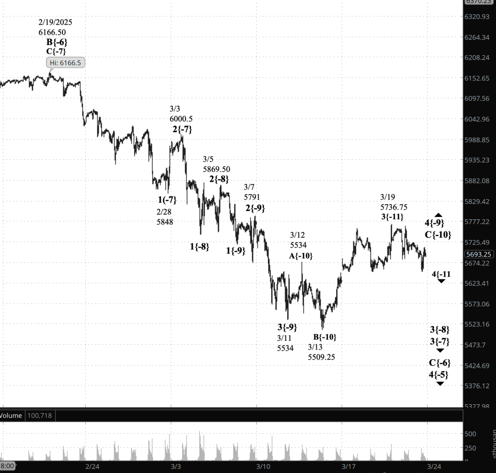 - Falling wave 4{-9} is underway and internally is in wave C{-10}.