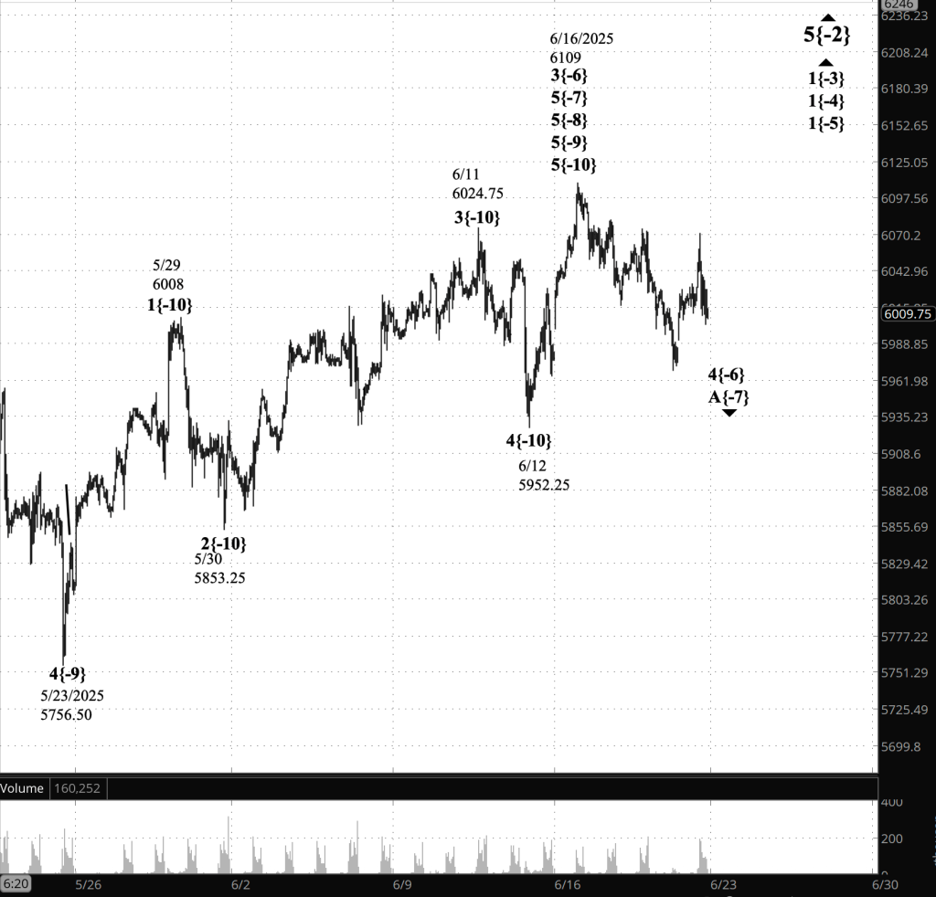 What does it mean? I’ve modified the Elliott Wave Theory analysis to imrprove the balance among the waves. As part of the change, the June 16 peak, 6109, became a major turning point in the market.