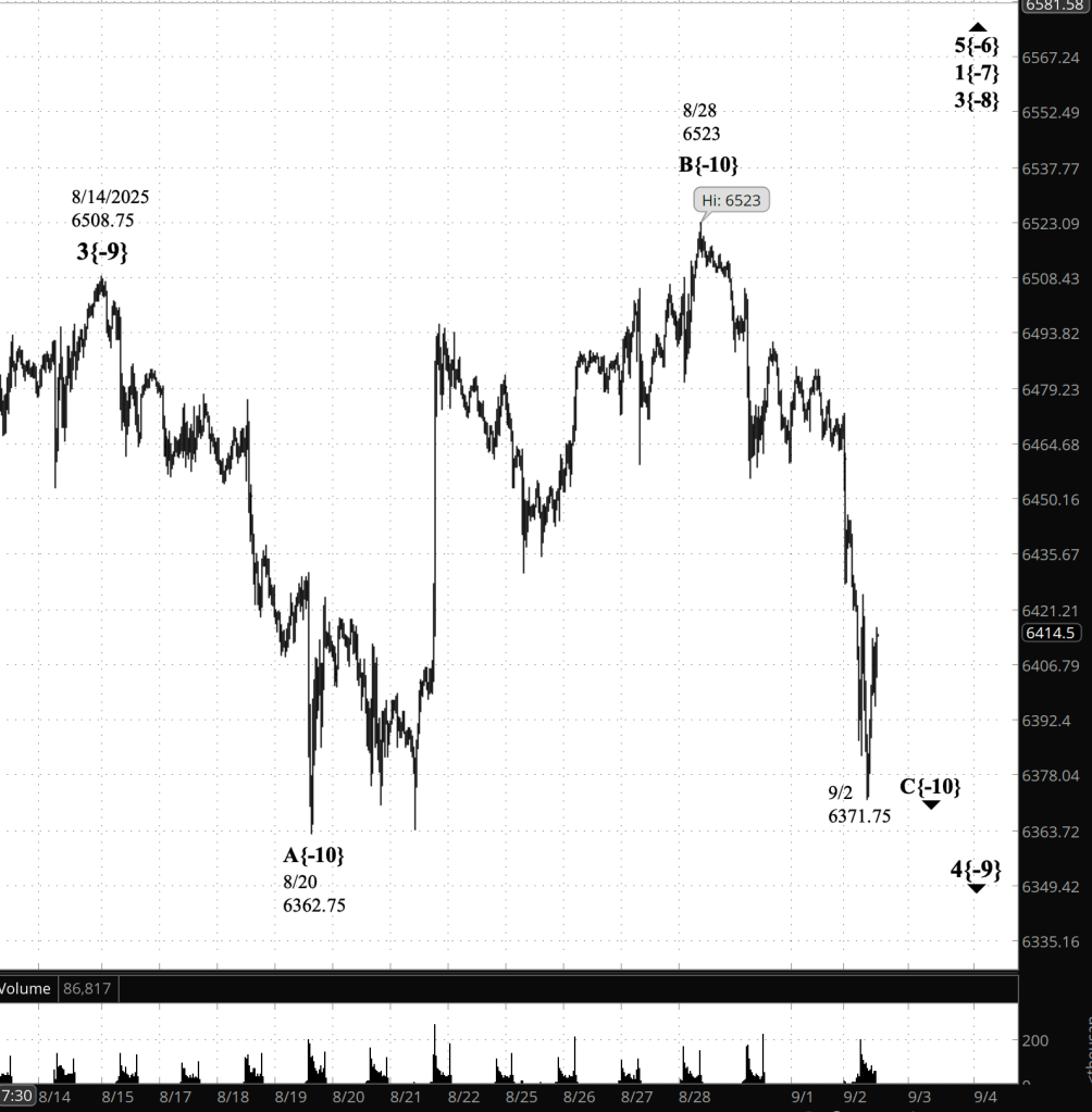 What’s happening now. The S&P 500 E-mini futures peaked at 6523 on August 28 and then began a decline, picking up pace today before the opening bell and reaching into the 6300s.