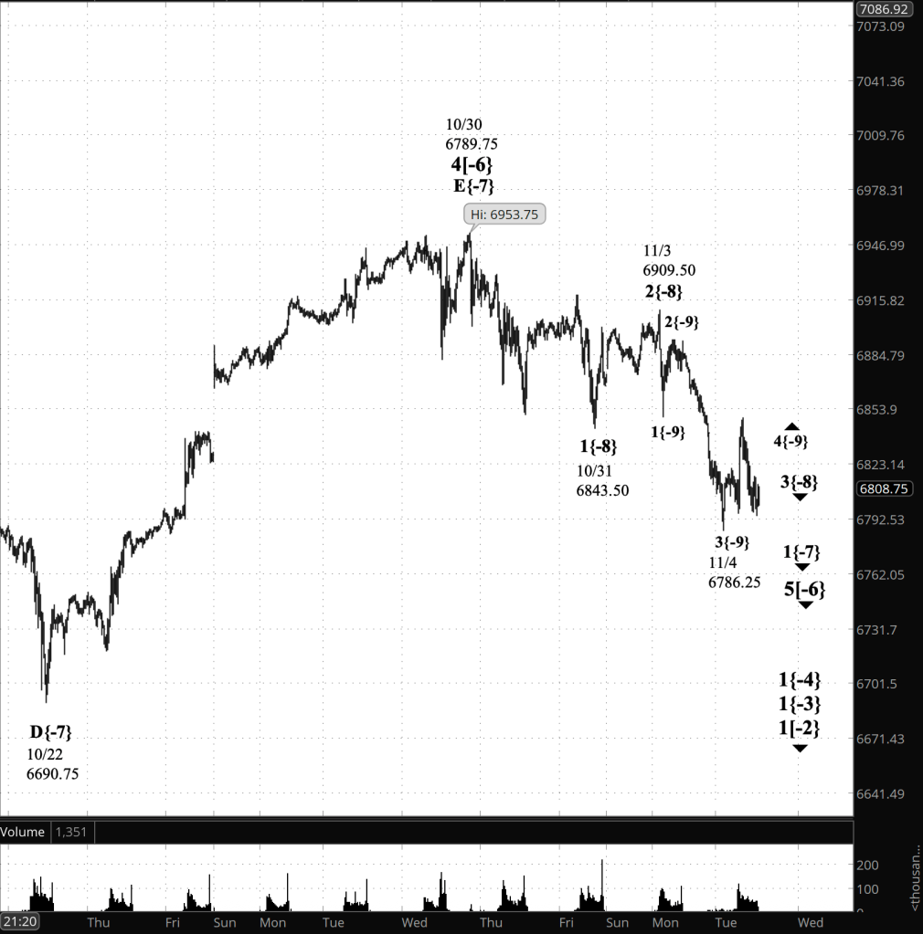 - 1{+3} Supercycle, 10/8/2025, 6812.25 (down}