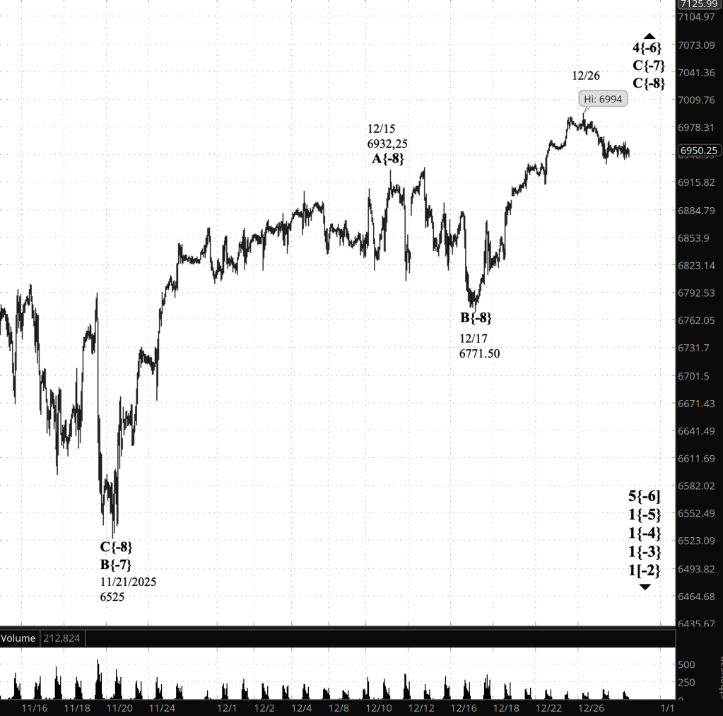 - A follow-through drop below 6932.25 (the 12/15 A{-8} marker) would be a cleaner “trend has turned” confirmation.