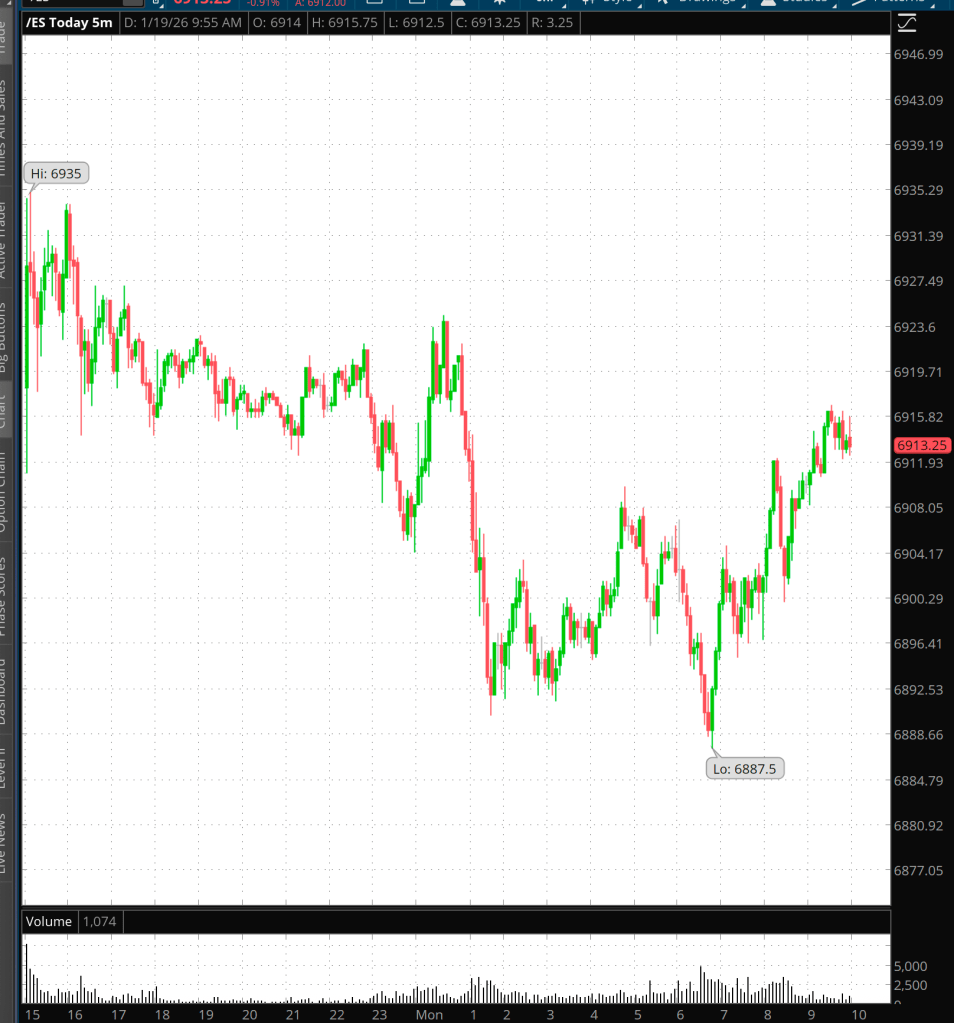 I’ve posted a short-term chart with 5-minute bars to show the course of today’s trading.