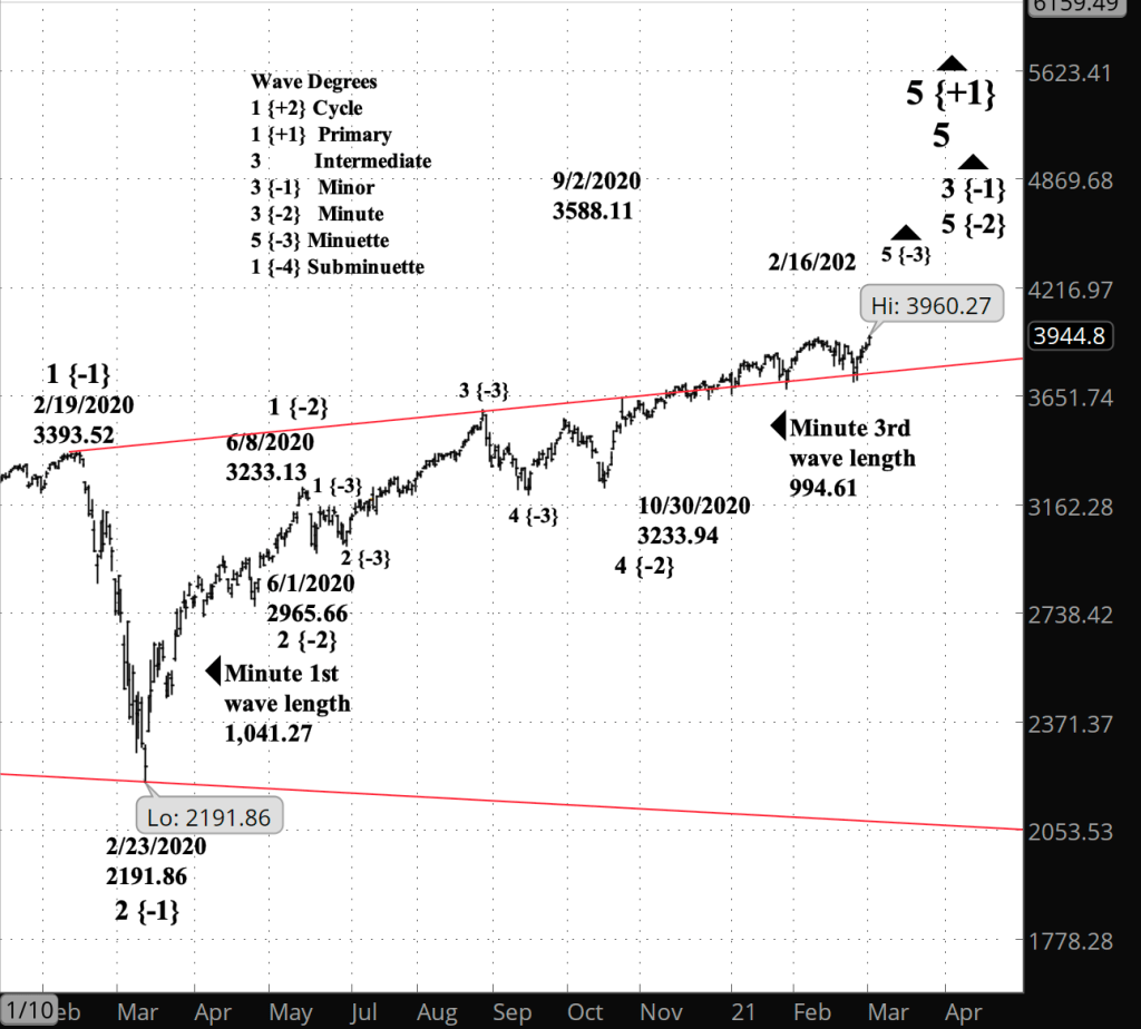 What does Elliott wave theory say? Yesterday’s breakout signaled that the Minor wave uptrend that began February 23, 2020 is still underway.
