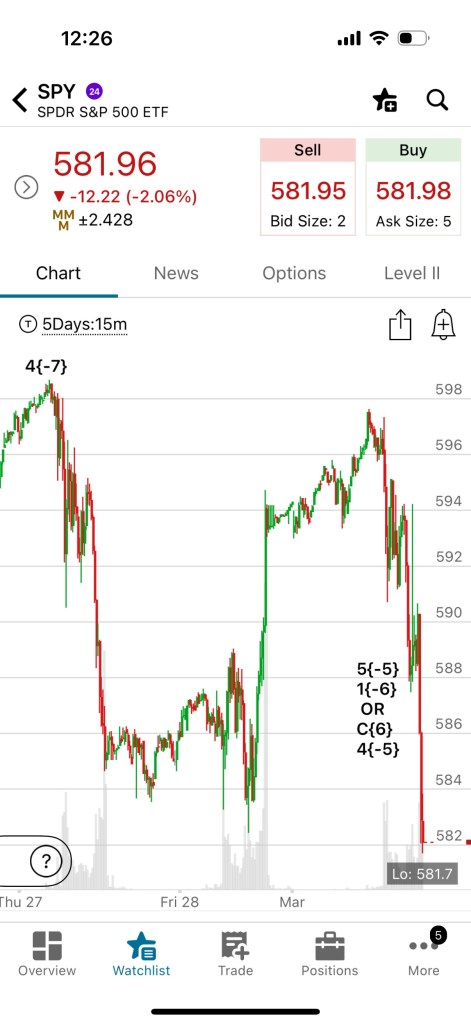 What does Elliott Wave Theory say? Here are the waves that underlie the morning’s analyses as they appeared on the chart.