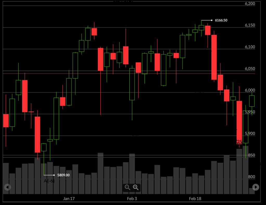 What does it mean? In Elliott Wave Theory, the decline that began on February 19 from 6166.50 is a declining C wave within a 4th-wave downward correction that began on December 16, 2024 from 6163.75.