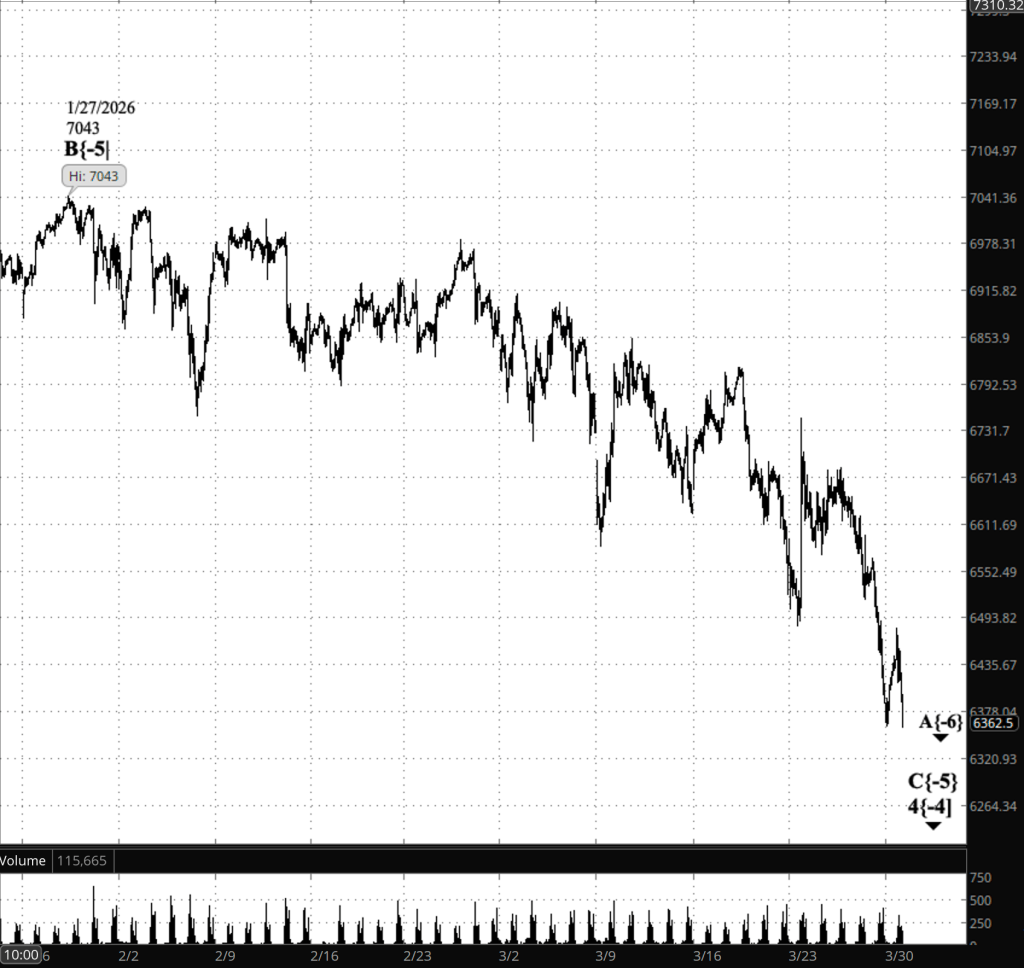 Bottom line: Above 6480, the market shifts into a confirmed B{-6} rally. Below 6353, A{-6} is still driving lower. Between those levels, we are in a transition zone where the structure is still resolving.