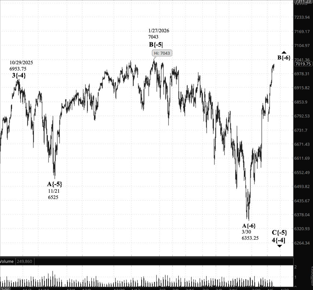 What’s happening now. The S&P 500 E-mini futures declined overnight to 6991.75 and then rose to the 7010s — at one point spiking to 7018 and immediately withdrawing. The price rose sharply as the opening bell still echoed, reaching 7024.25 and then falling back.